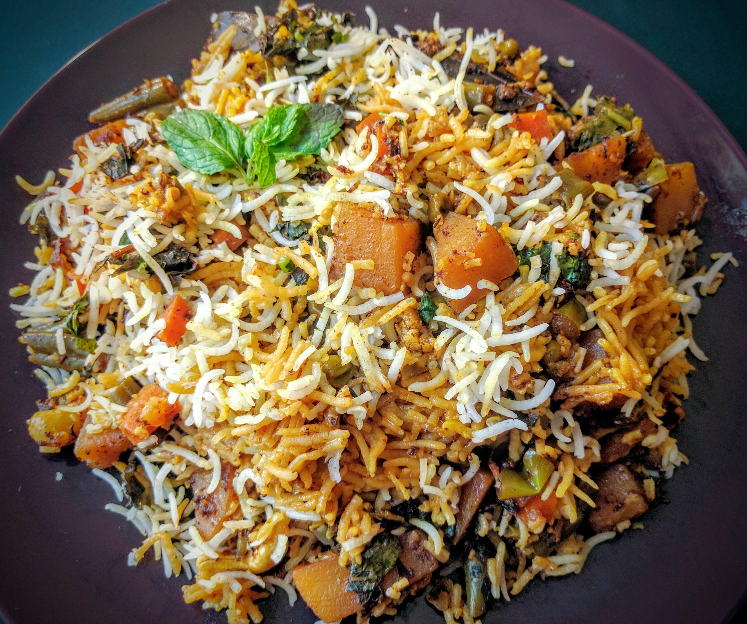 Veg Biryani is a delicious medley of rice, vegetables and a variety of spices. Compared to the other varieties of rice dishes like Pulao, Biryani has a stronger taste of curried rice due to a higher amount of spices.